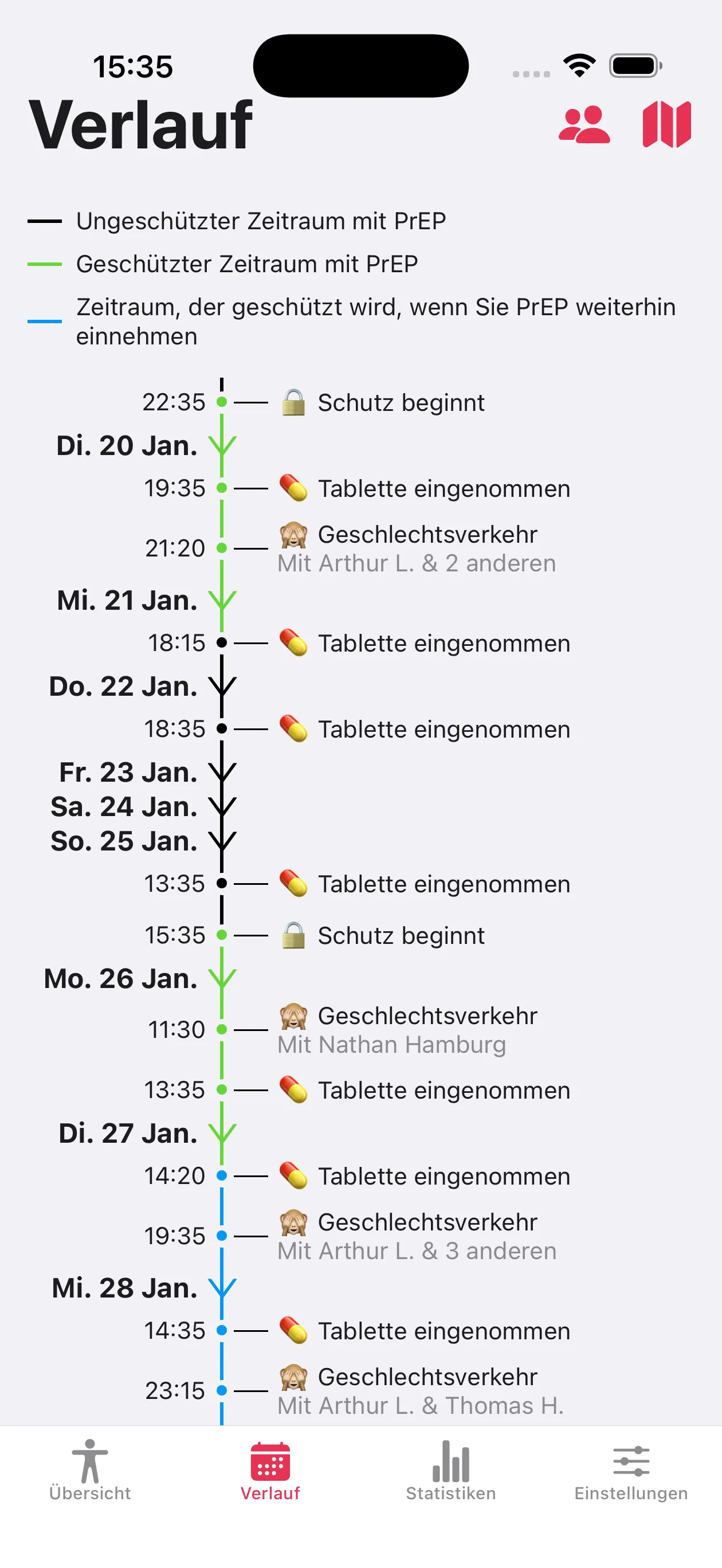 My PrEP berechnet präzise Ihren Schutzstatus: wie viele Tabletten Sie nehmen müssen, wie lange Sie geschützt sind und wann Sie aufhören sollten.